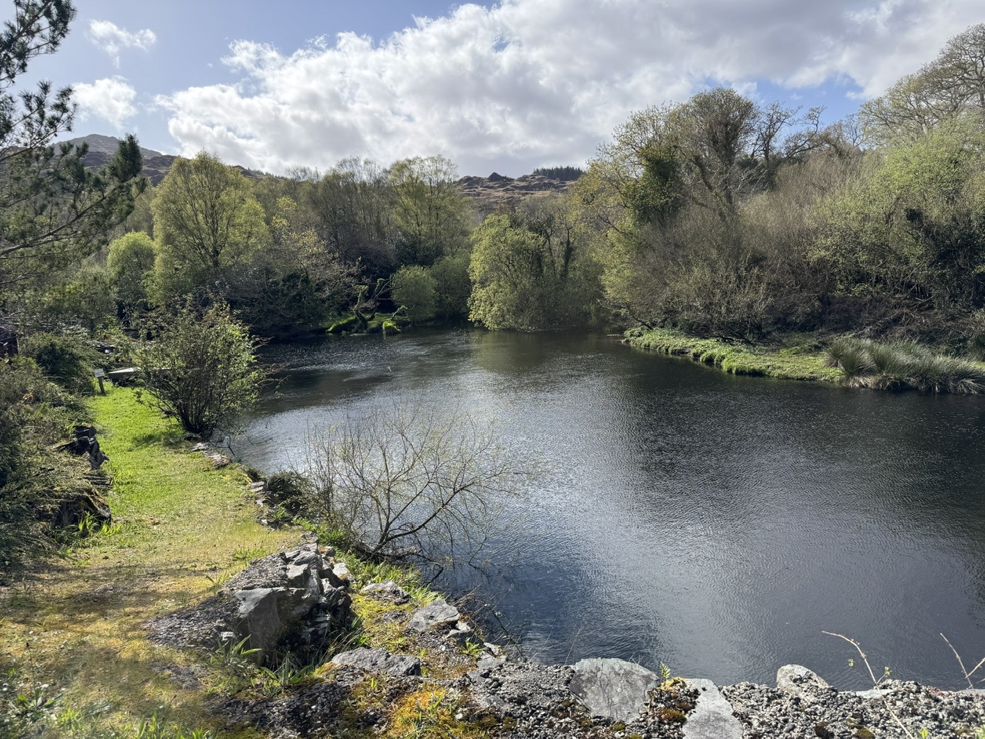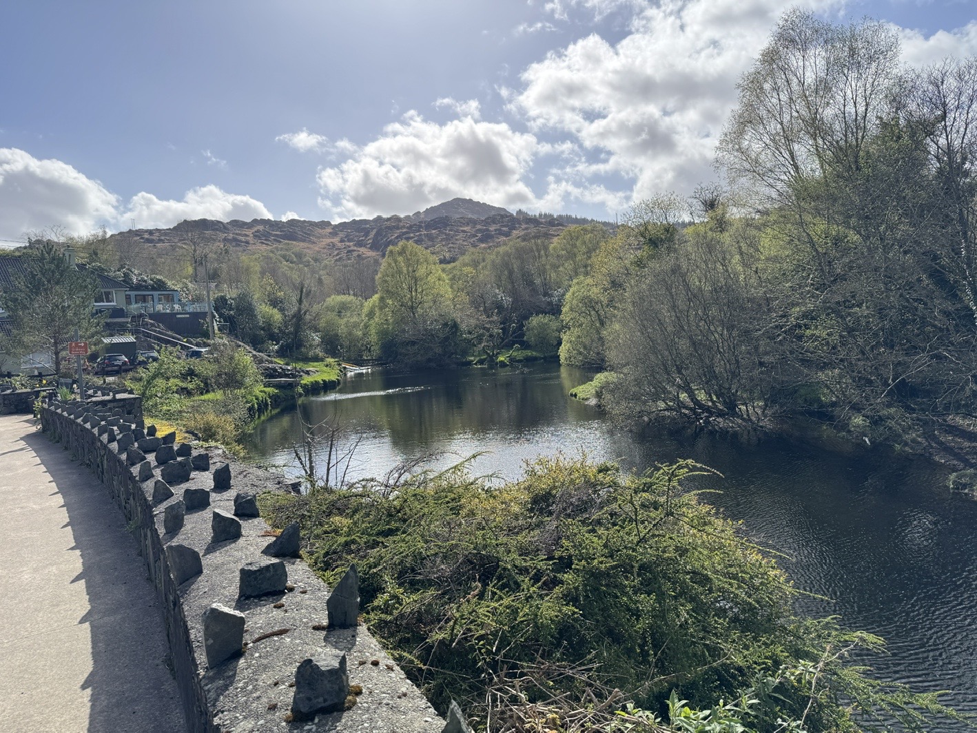 Beautiful rivers in this area How would you like to live on the Riverside A Celtic Cross with a tombstone in Irish. The letters are also adapted