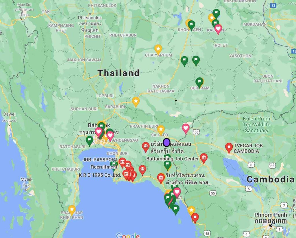 Close to the border with Cambodia you will see a little purple dot where this new farmhouse is being set up by a friends family. A little bit up and to the right you’ll see a white heart indicating where the 900 year old Khemer ruins are which you will read about in a previous blog. This is very much in the countryside and very typical of Thai countryside in general.
