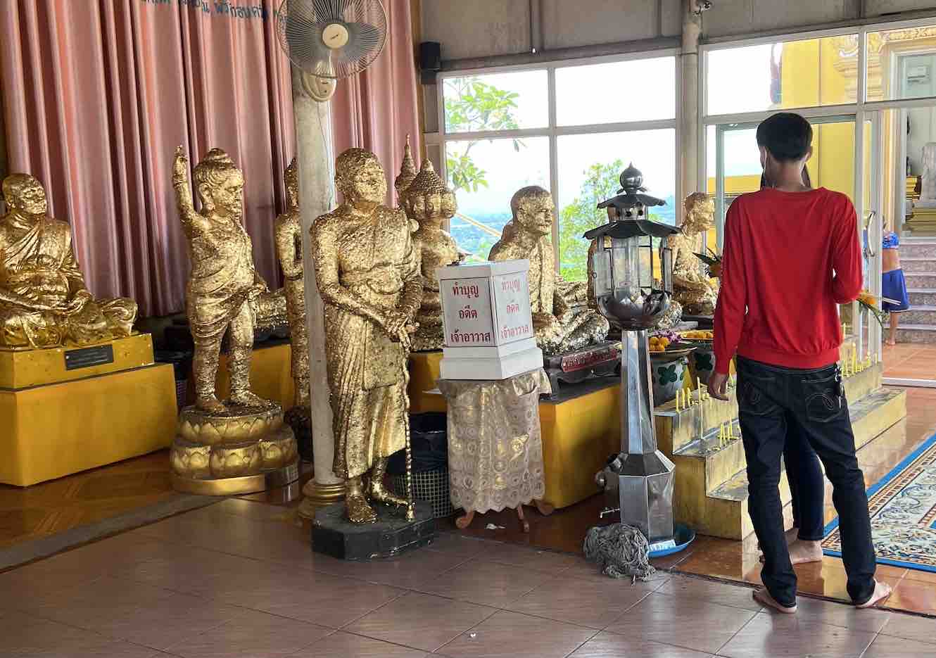 In about 1985 I took the slow, local train from Bangkok to Chiang Mai on a hard wooden seat in second class. I guess the average speed was about 50 km/hour, very slow. After many, many hours I got tired or riding, mostly in the parts of the body that come into direct contact with the wooden seat, so I alighted in Nakon Sawan. After almost 40 years later I returned, a few days ago, and found it much more developed, easier to get around and the popular sites still there, of course. Here are some of the best photos I took of temples and scenes.