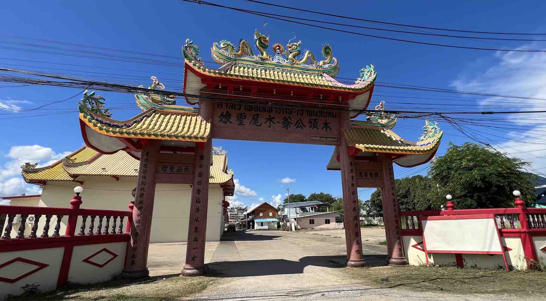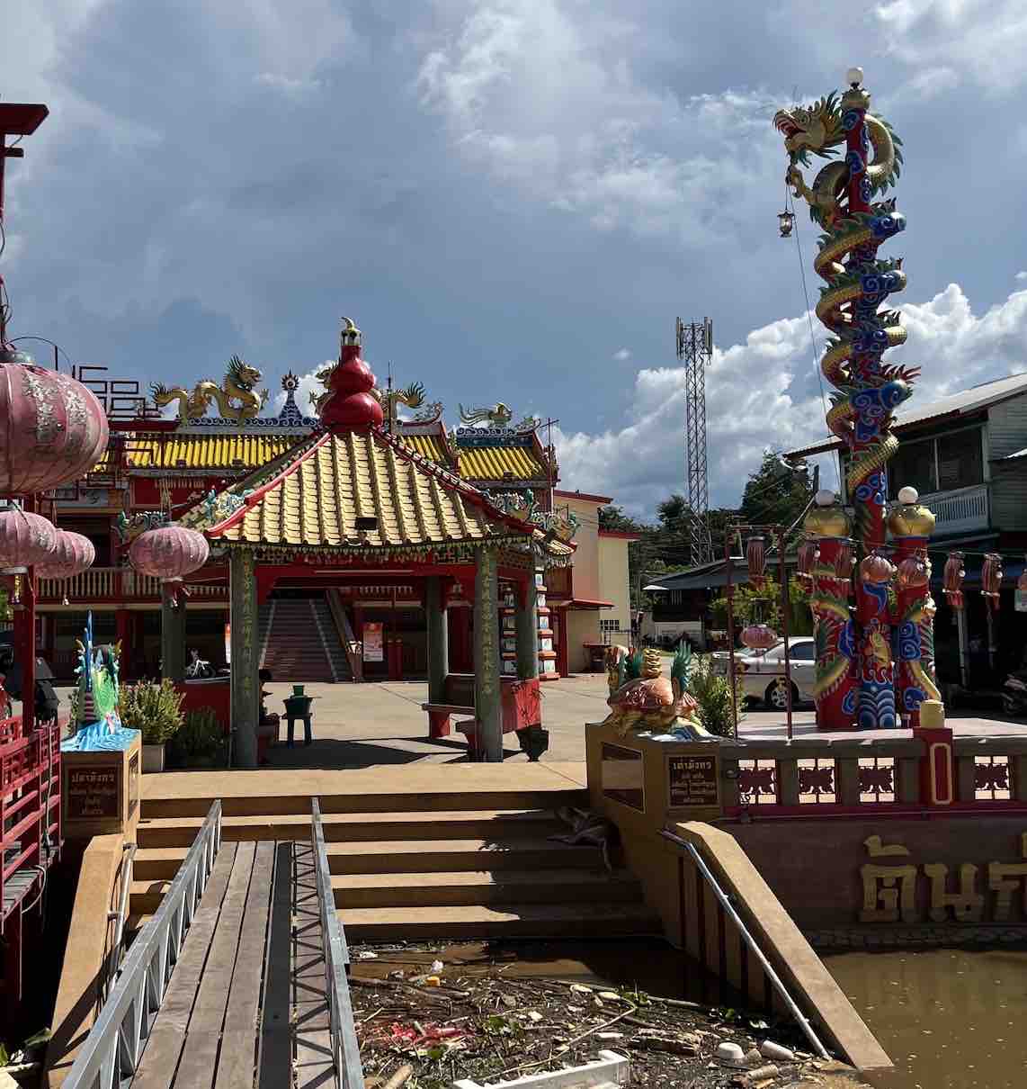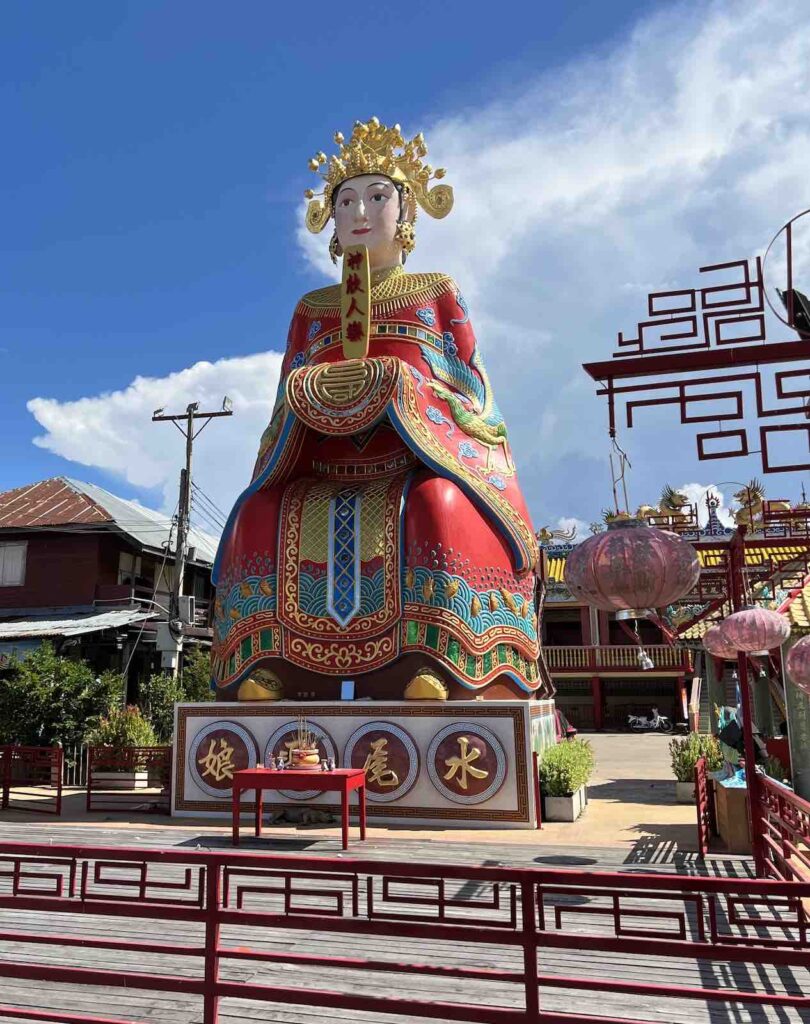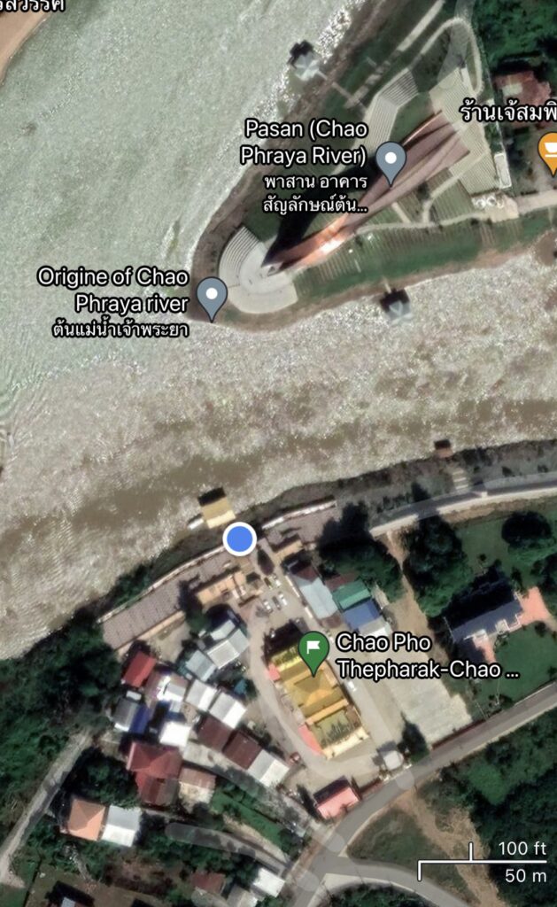 Chao Pho Thepharak Chinese temple at the meeting point of 2 rivers, the Ping and Nan which create the Chao Phraya River, the one going through Bankgkok and out to the Gulf of Thailand.