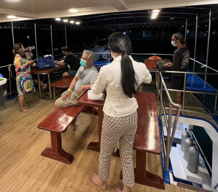 The Thai customers are very quiet and considerate. I was expecting they might start Karaoke but they didn’t. I think they just preferred some quiet and joyful talk. They’re from the same dive club, brought their own instructor to be divemaster l. I would have chatted more with them but I have my own issues with the painful hole in my, able to eat only on one side very slowly. I didn’t want to bother them with my affliction.