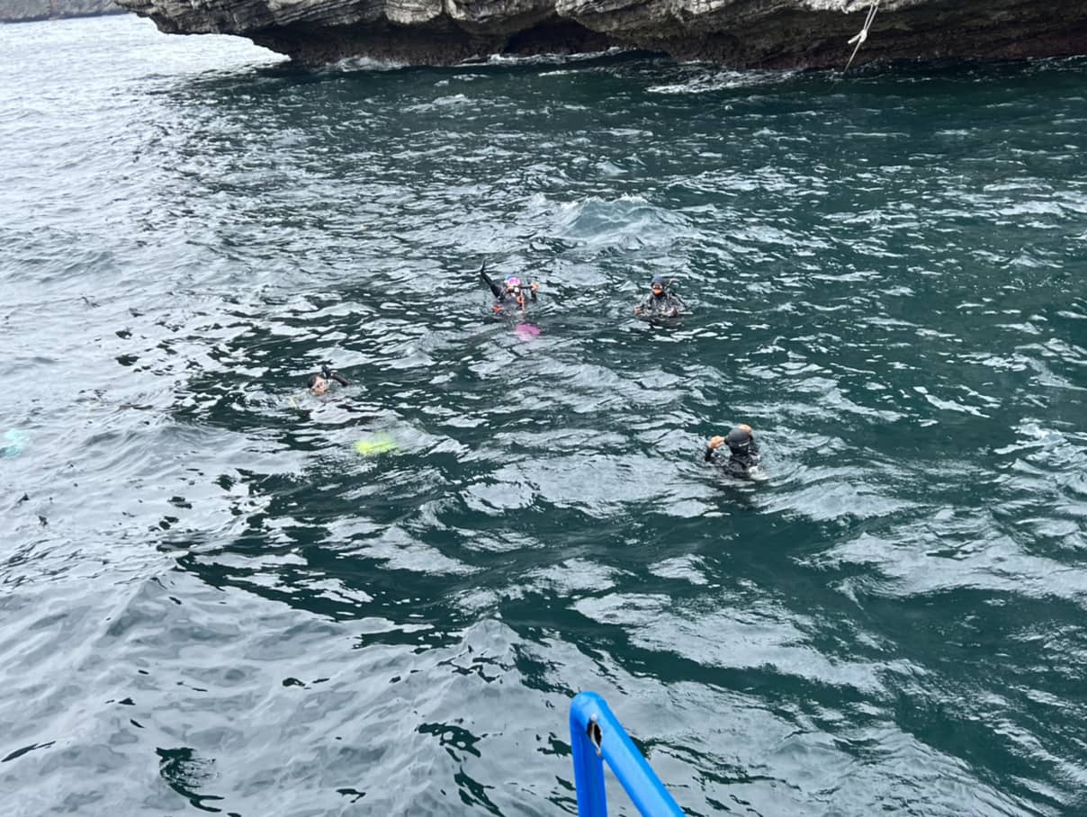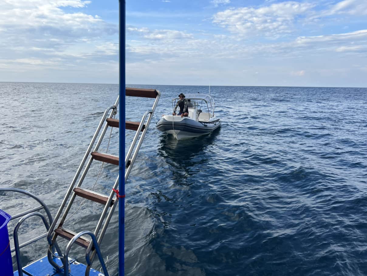 The dives were good, they say, but getting back on the boat today was challenging. Everyone is fine though a few close calls.