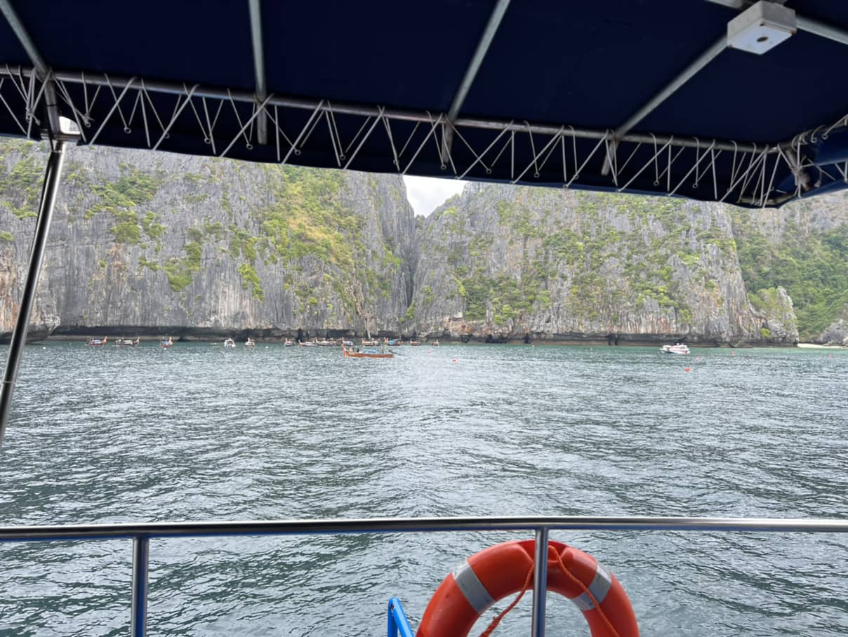 I woke up at six as usual, went upstairs for cups of coffee and then decided to go for a swim. It was still not very light since Maya bay is on the opposite side of the sunrise. I was thinking about going close to the sailboat attend decided since it was quite late and I didn’t see any people up on deck it was probably not a good idea since they might sink I was attempting to orthopod and steal something. You never know.