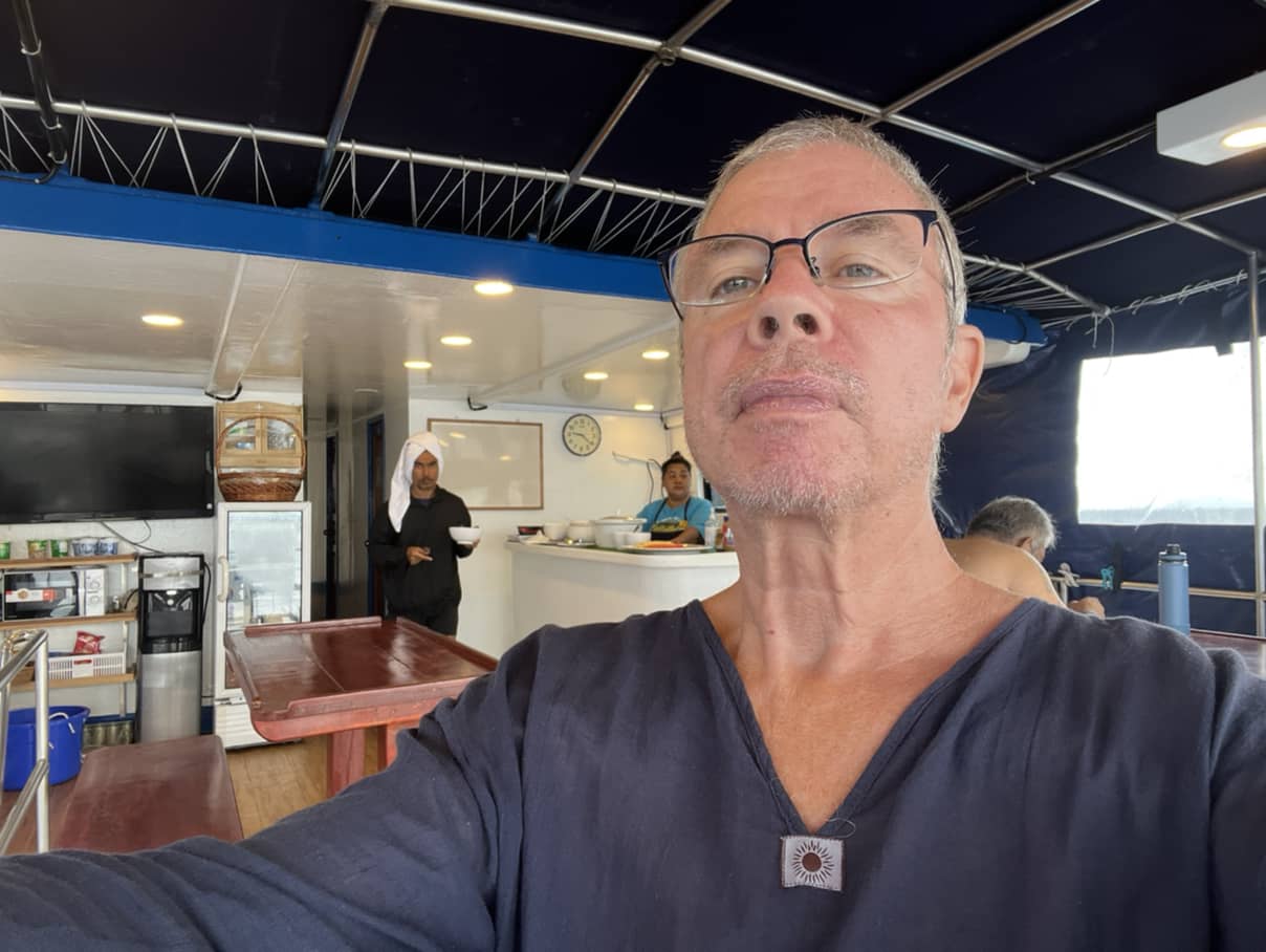 At 5 PM after the last day dive we stopped at a very calm place so I just went for a swim with fins and tried a few skin diving tricks to try and get my breathing partially back to where used to be so I could go down and see some 5 meter corals and sea life.