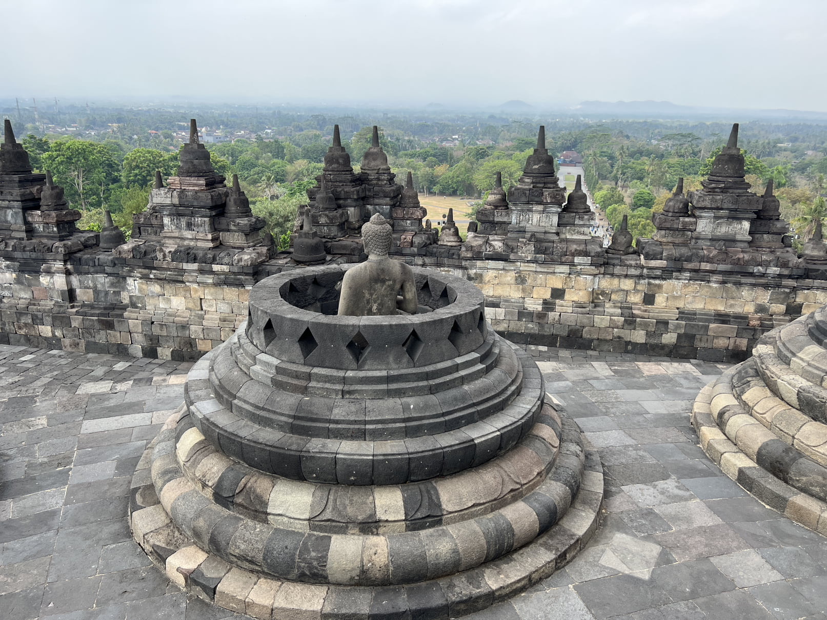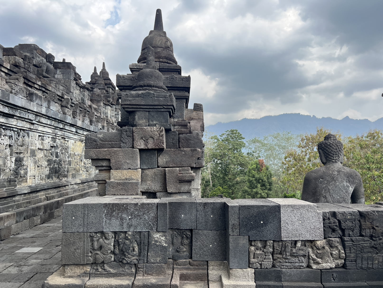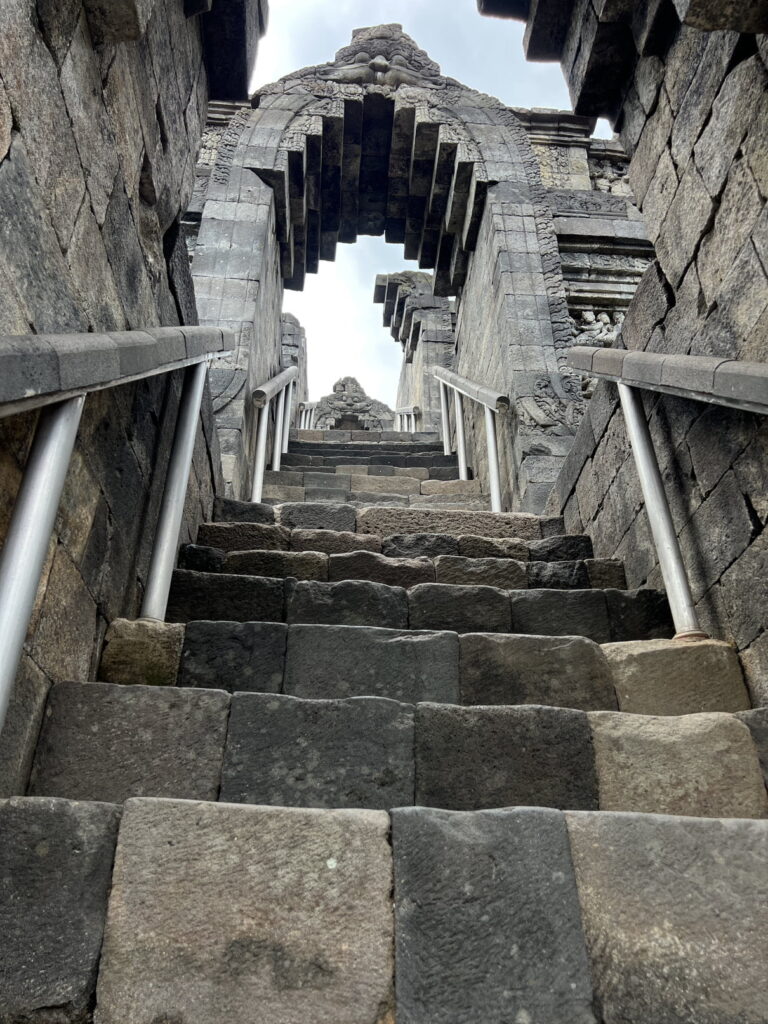 This temple was discovered in the 1800s by the founder of the raffles hotel in Singapore. The temple was pretty much buried in volcanic debris since there are four volcanoes in the area. The theory is that people left this area because of the constant volcanic eruptions which made it unsafe