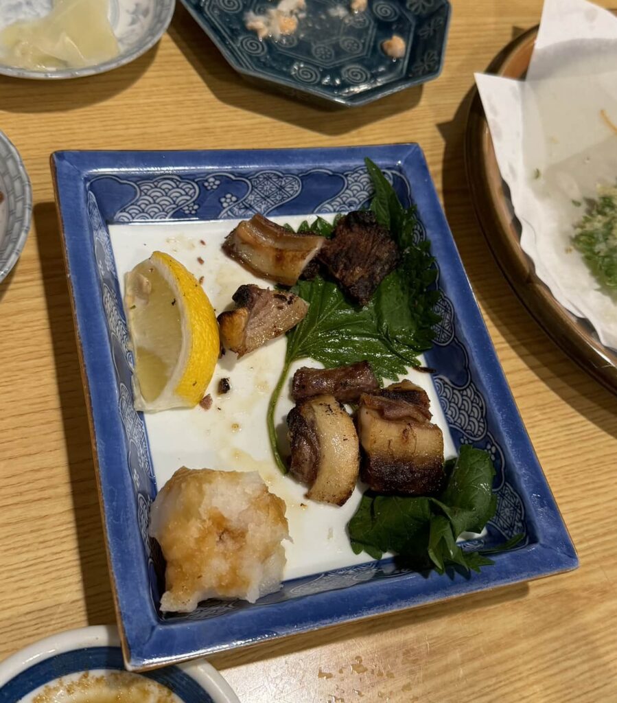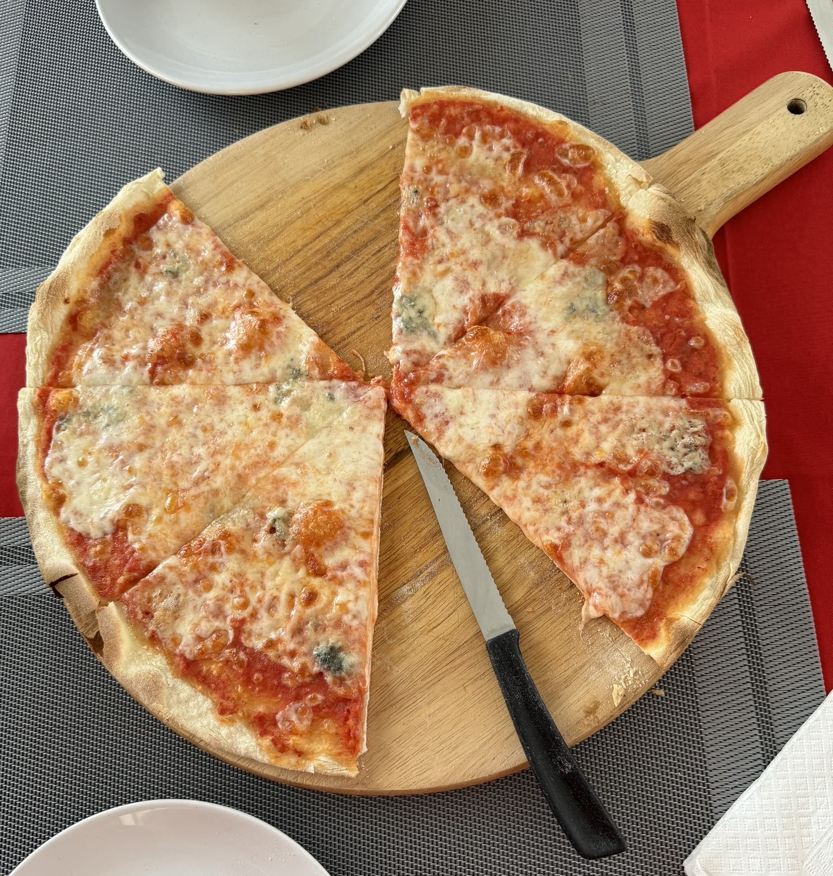 Of course we have to start it out with pizza. This is made at Flavio’s restaurant and is a nice thing crust quattro formaggi. On a quick trip to Japan it was just very necessary to have a lot of pickled ginger You can guess Just for me they made some very nice tempura The brown food on the small dish is salted Fugu (puffer fish). The first time for meFatty tuna was very delicious Finally I got to a Korean grill This Korean ramen was labeled very spicy but there was almost no spice in itVery rare Half green half yellow indicates some chemicals used in growing these bananas What do these dogs have to do with food? They are waiting for their evening handout