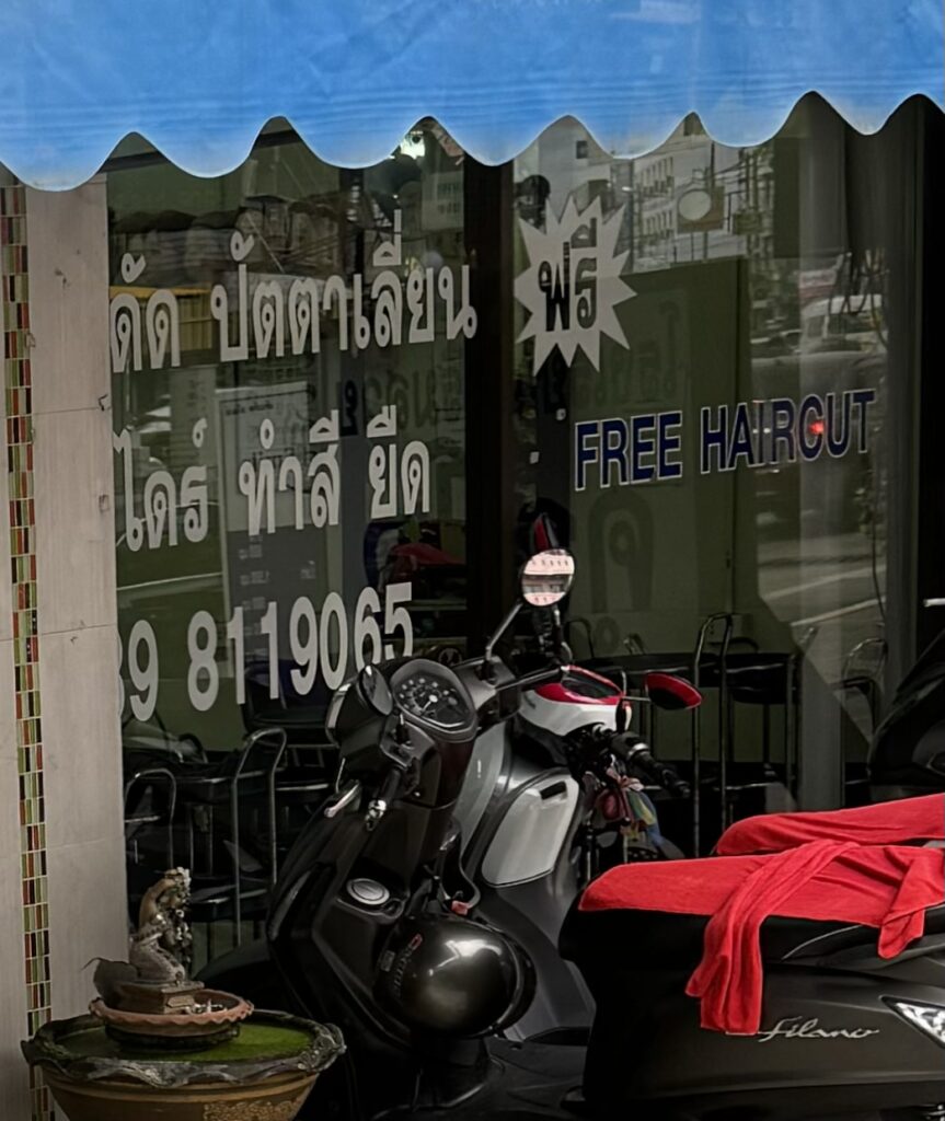 This photo speaks for itself A snake is taking its time to suffocate a Tokay gecko Koh Kood coffee shopKeeping fish for customers at the restaurant I think he’s trying to tell people he wants some food These leaves are good food for shrimp farmsClearwater at Koh KoodThis grilled gecko is the reason this electric plug was not working You could do almost anything to Ciccio but he would not move Theif likes her belly rubbedI wonder what they charge for This guy was hanging around for some reason No filter was used for this photo The guy in blue jumped onto the ferry as it was leaving the dock, hit one of the metal plates which dislodged and almost fell in the water A beginning driver Obviously an early PC adopter Where else would you use your phone but while riding your motorcycle Do all wheels on the back axle serves some purpose
