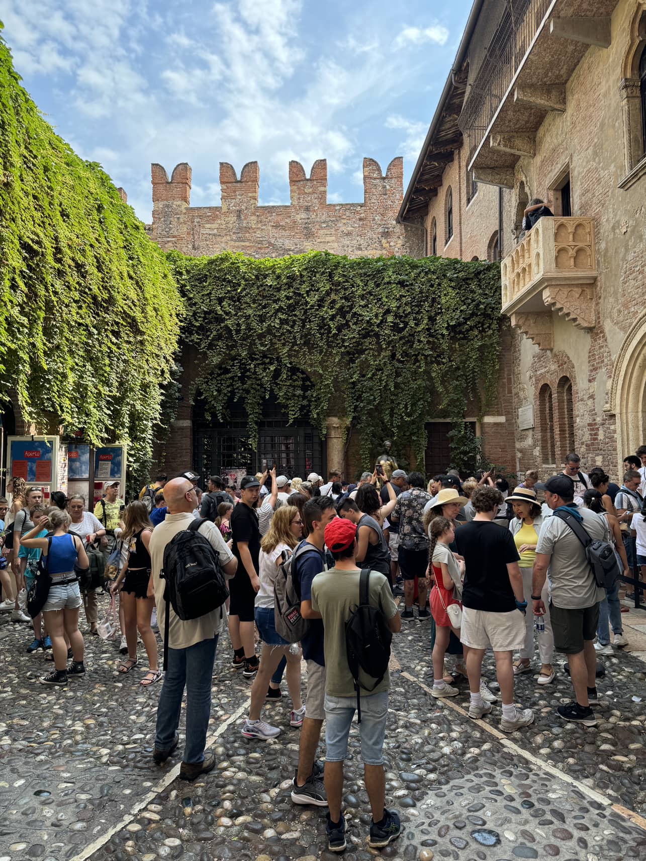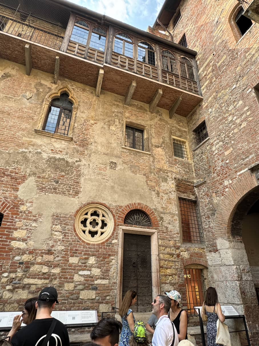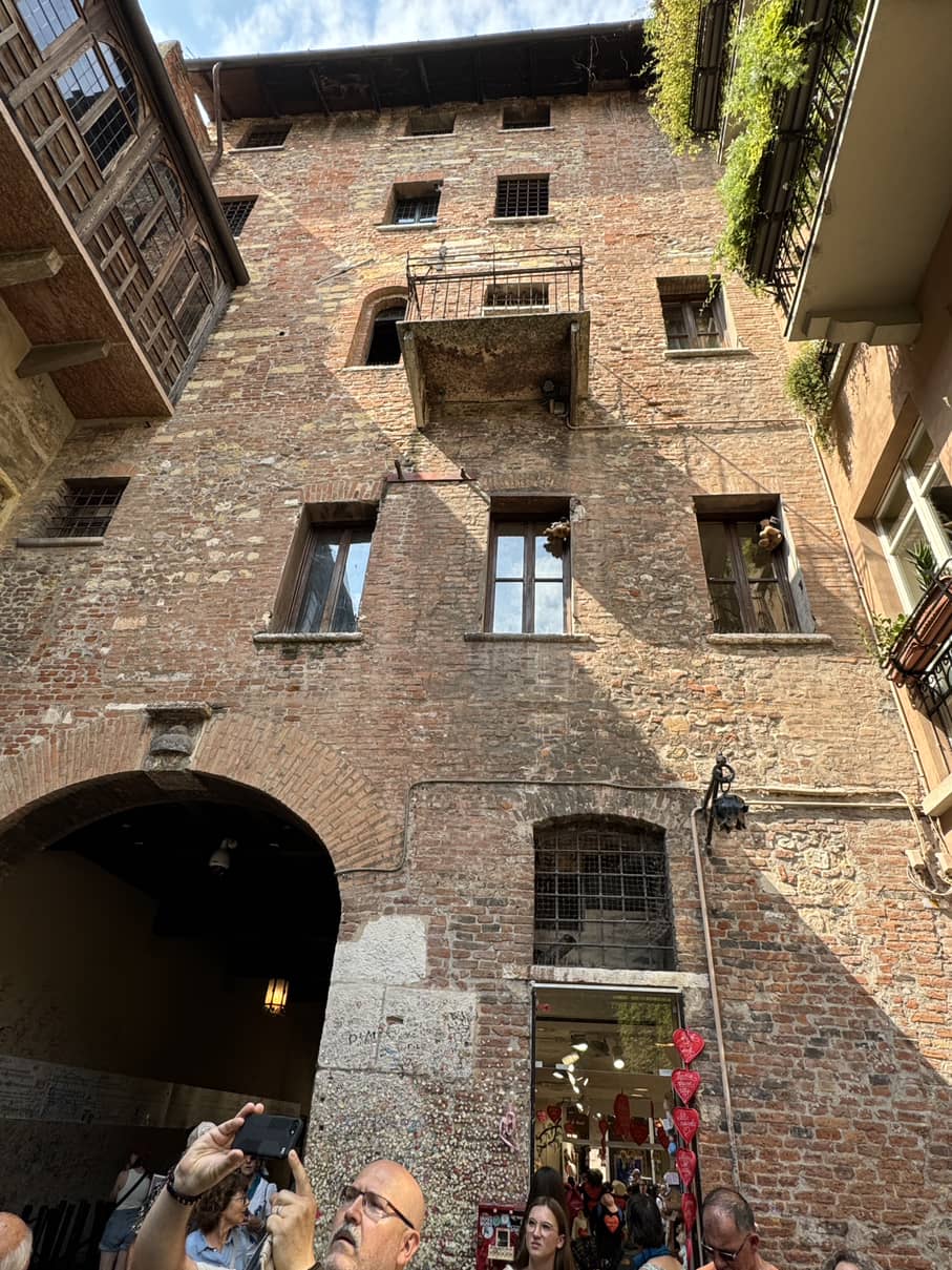 so I think you understand the story of Romeo and Juliet. But now you are going to hear the rest of the story. This famous building, I have not conclusively determined, may or may not have been the building Shakespeare went to in describing his play. What I hear from local people is that Julia was a real person but lived in a different house in another part of town which is now a shop. But this is a nice tourist attraction where everyone is supposed to go to the bronze statue of Juliet and touch her boob. So you can go visit a house that Shakespeare may or may not have visited to try to experience a story that may or may not have happened. But the building ownership records are clear. Go to Verona and dig more for the rest of the story.