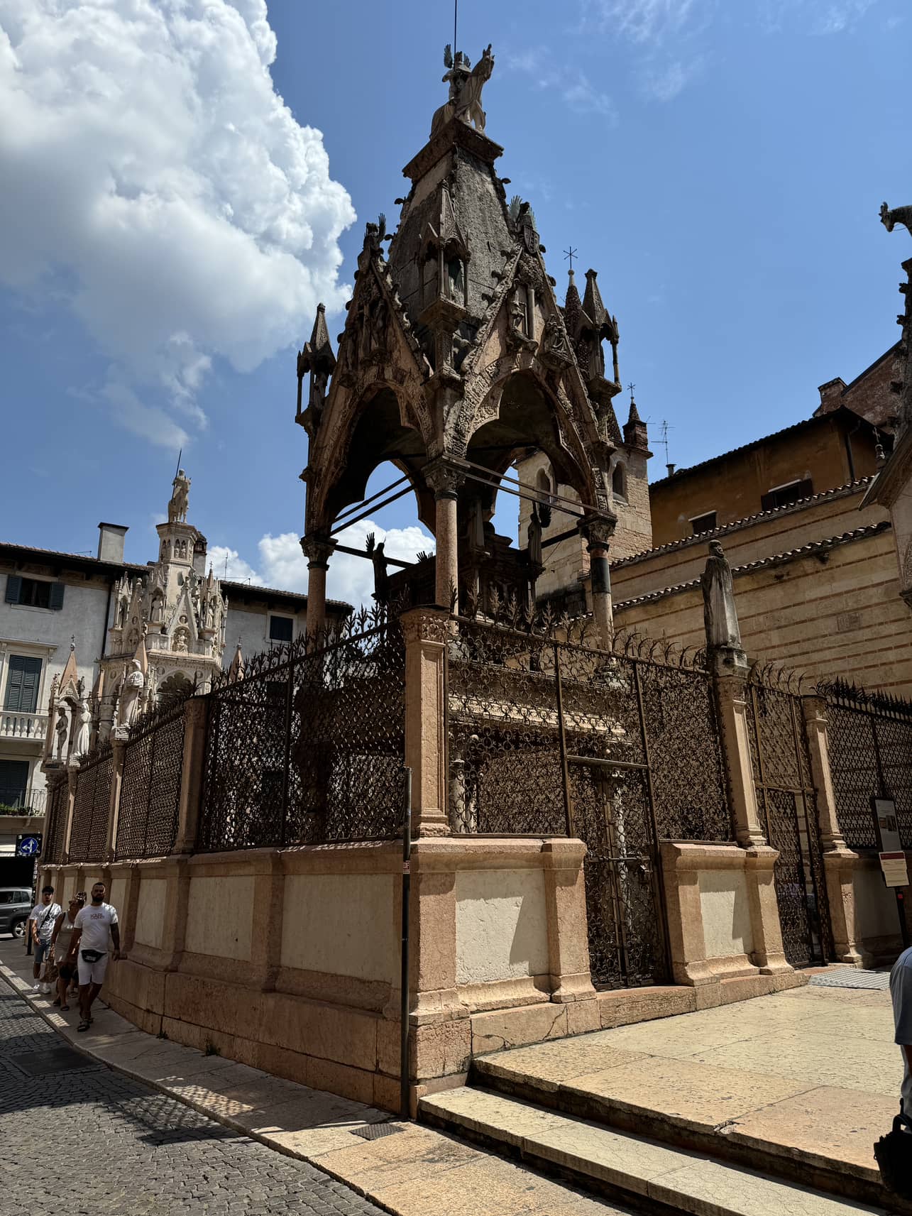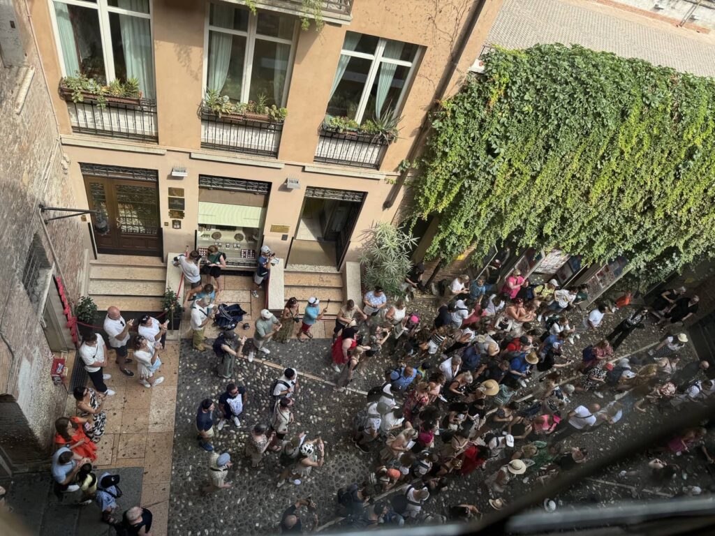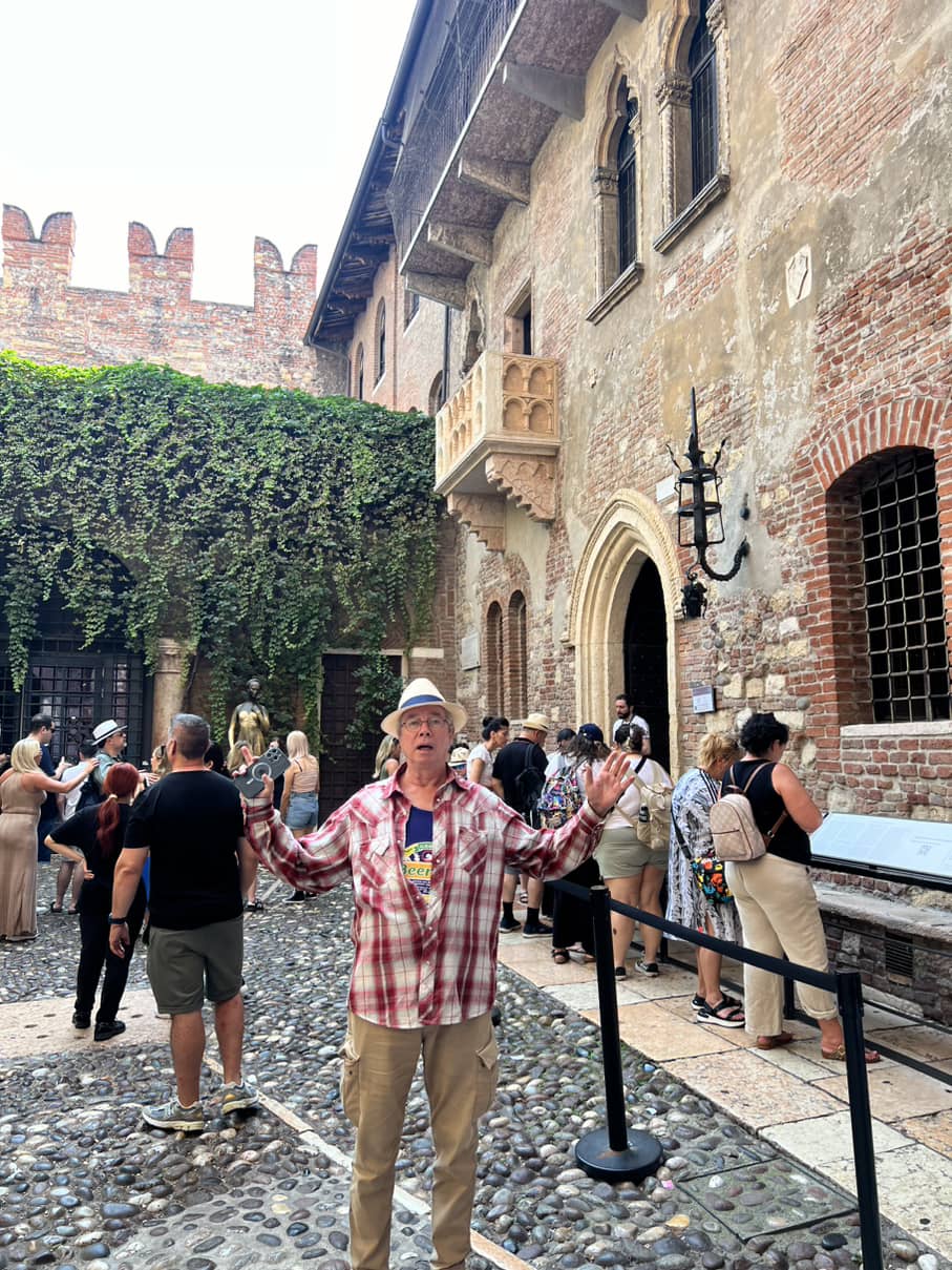 so I think you understand the story of Romeo and Juliet. But now you are going to hear the rest of the story. This famous building, I have not conclusively determined, may or may not have been the building Shakespeare went to in describing his play. What I hear from local people is that Julia was a real person but lived in a different house in another part of town which is now a shop. But this is a nice tourist attraction where everyone is supposed to go to the bronze statue of Juliet and touch her boob. So you can go visit a house that Shakespeare may or may not have visited to try to experience a story that may or may not have happened. But the building ownership records are clear. Go to Verona and dig more for the rest of the story.