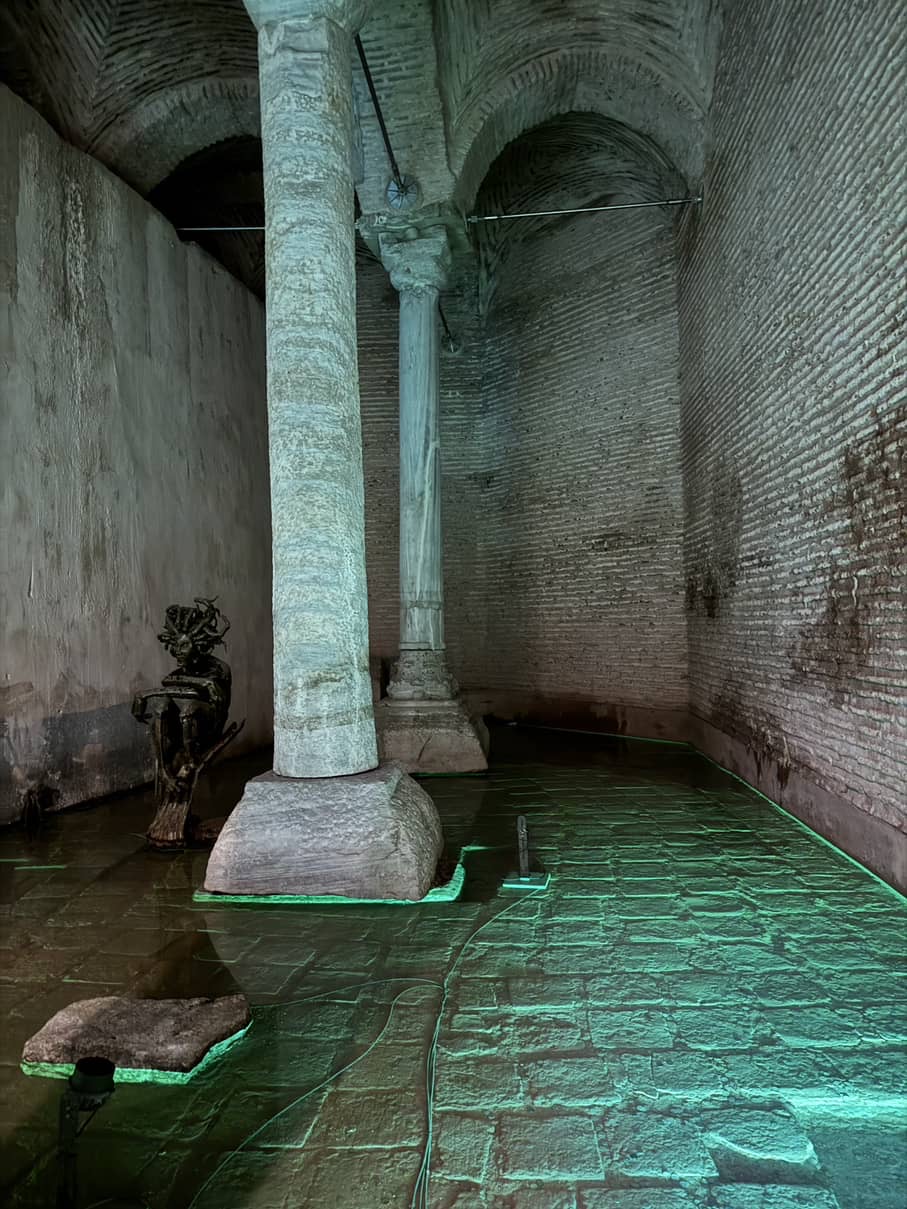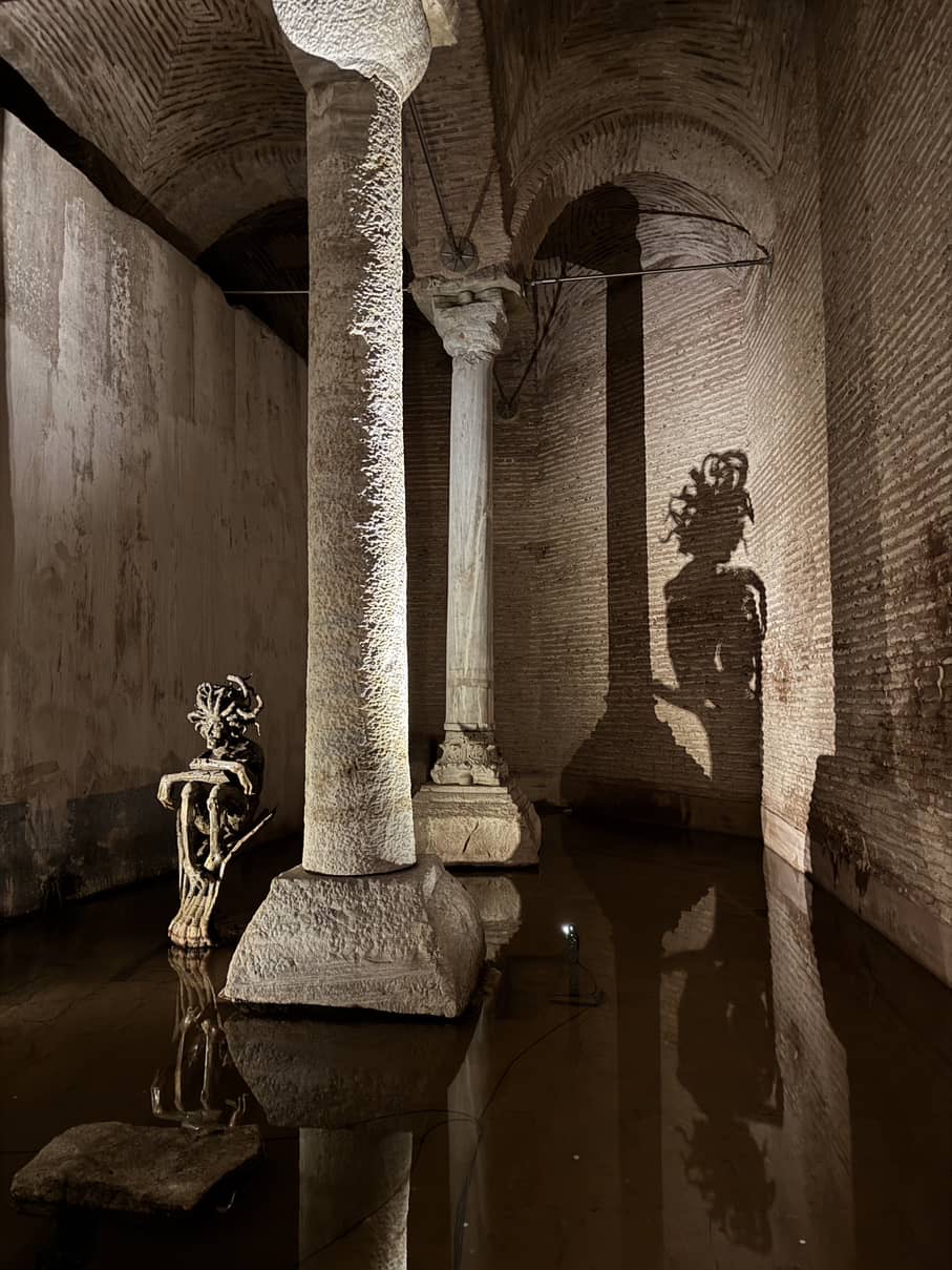 the basilica cistern Istanbul is one of the main attractions which is not inexpensive to enter, something like €27, but they have fixed it up so it does create an interesting tourist attraction that you might be interested in seeing. I didn’t find any more fish here so I guess they cleaned them out.