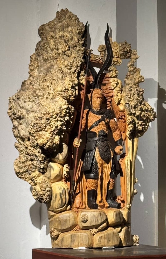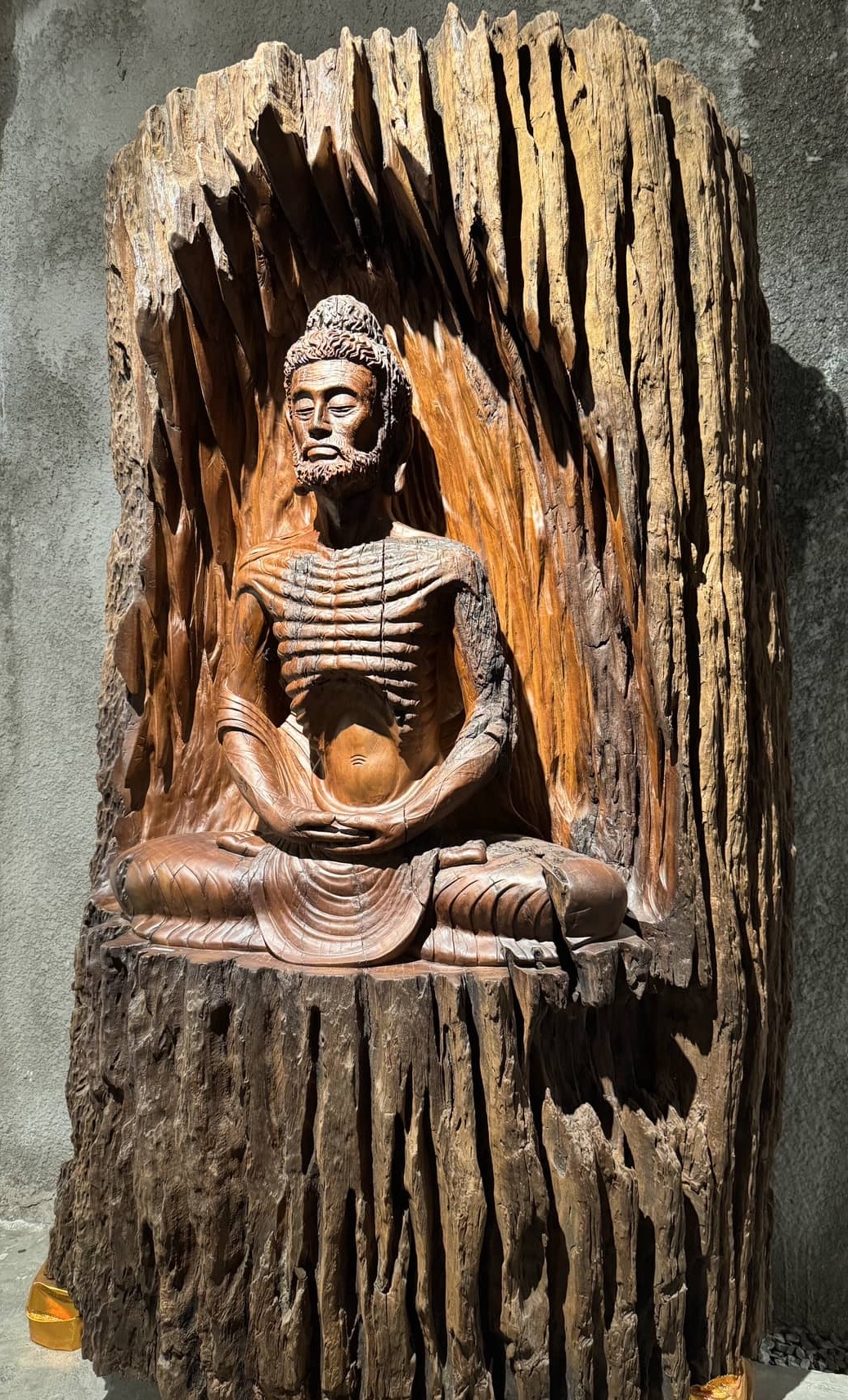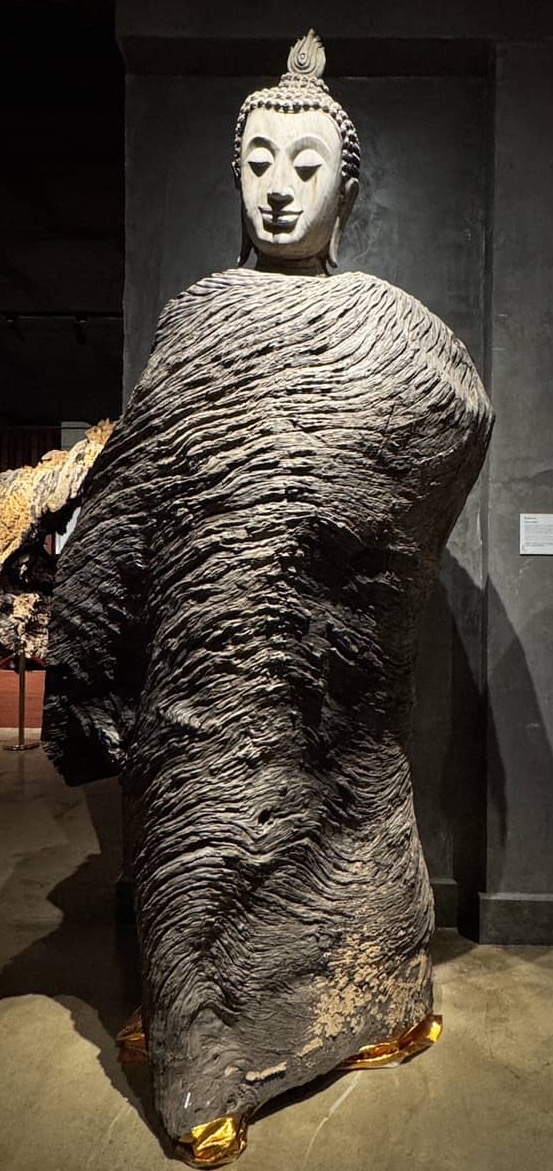 This sculpture, crafted from a log that has been submerged in the Namgnuem River for centuries, has been brought to our museum and transformed into a new art piece. We aimed to preserve its natural beauty, so we chose to sculpt only the head of the Buddha statue, leaving the body of the wood exposed to display the unique marks created by the water.