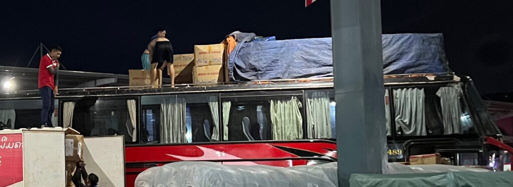 Laos sleeper bus. One space for 2 people. slim people wanted!