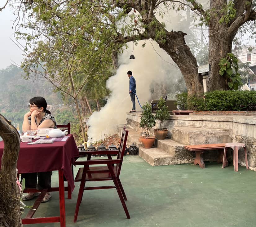 in Vientiane we saw a sign reading “free haircut” so we stopped since I needed to get a very serious trim.
