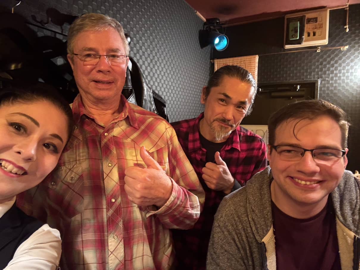 Beautiful tree mossInside RyoanjiOld roof decorations. You can see the circles with the three items swirling, a design you see also in the Celtic traditionHere you can see modern Japanese written with some characters which are smaller off to the right. Those are to help people read the specific pronunciation of the kanji and are always used for students when they are learning kanji. This pronunciation writing is called furiganaa virtuous dragon The famous Zen rock gardenThis was just good timing. There were a lot of pollutants and also missed in the air which made the Son this red colorThis model is called the carbus. I guess they couldn’t make up their mind what to call itUeno park with a cherry blossomsTypical post war restaurantKaraoke in the small restaurant I never require much encouragement to sing karaoke“Italian” in kanjiOne of the most famous graveyards in Tokyo Betty Shibata’s gravesiteDeleting references to ChristiansThe small family tombThe bucket of water in the previous photo is used to wash the tombstone The last Tokyo tram at bar K and GoldenGai Shinjuku with Scott NellisPreparing for presentations during cherry blossom seasonTokyo Sunset With TAKEUCHI san singing karaokeThe street used to be lined with cherry trees 60 years agoWith my friend Katena sanPeople taking photos of the cherry tree With Hayashi san’s sister preparing to visit the tombHayashi family tomb his is the one on the far left and you will notice the many kanji above the dates and name. This is the Buddhist name given to the person when they pass away. The more money you pay the better name the monks will give you.Organized trash at the graveyarda very fancy grave Watch for cats and frogs my hotels convenience store was so packed with Chinese touristS it was impossible to even get in. I had to wait an hour for them finish their purchases