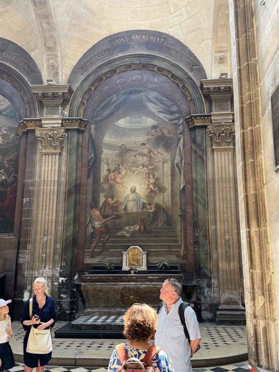 Entrance to the chapel a long line waiting to get into the chapelInside the chapel Chapel ceiling Just to prove I was there Middle courtyard typical of many Italian PalazoDecorated cart The palace entrance were the poster promoting Erwitt photography exhibit Entrance gate