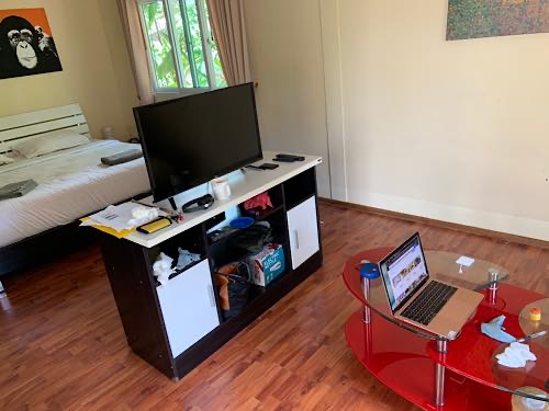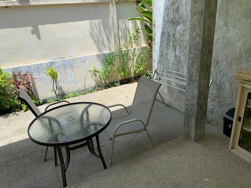 The hotel room itself is normally about 900 baht per day but since I was the only customer in a smaller room and I needed more space the owner agreed to let me use the large suite room with a private patio for 600 baht per day. Again, divide by 32 to get the US dollar equivalent. It’s about US$18 per day.