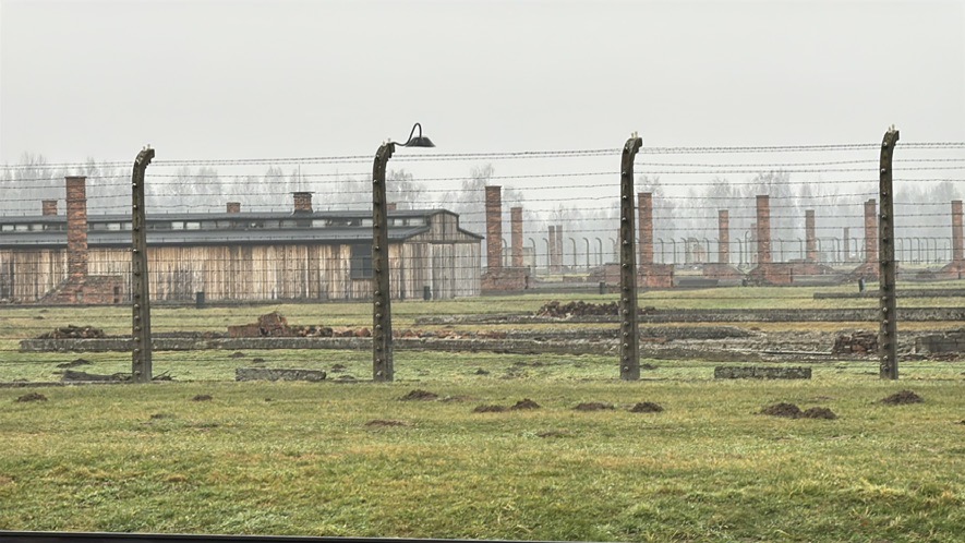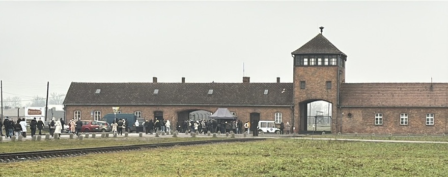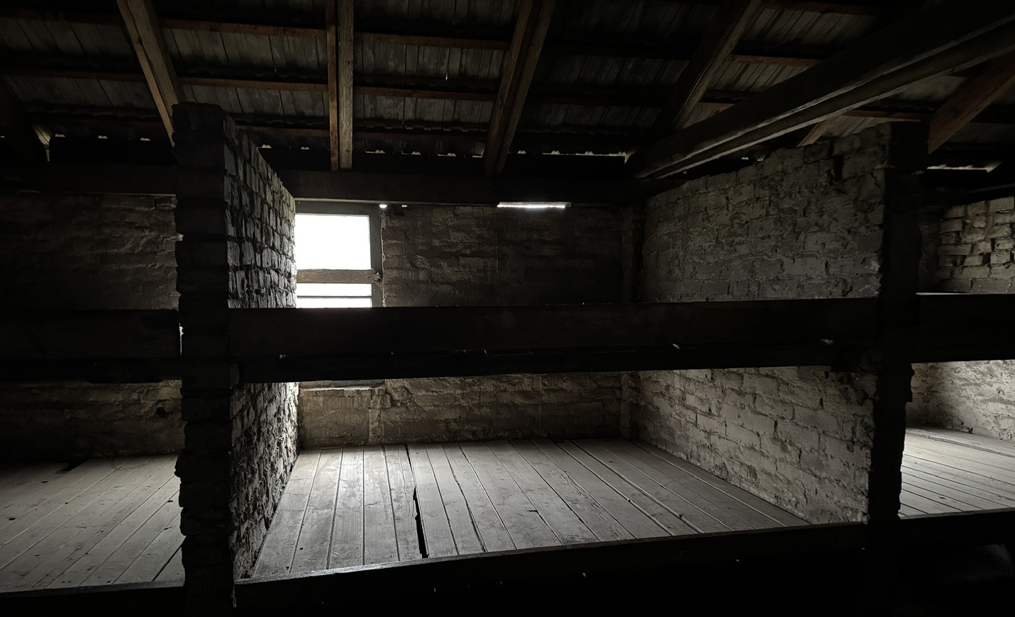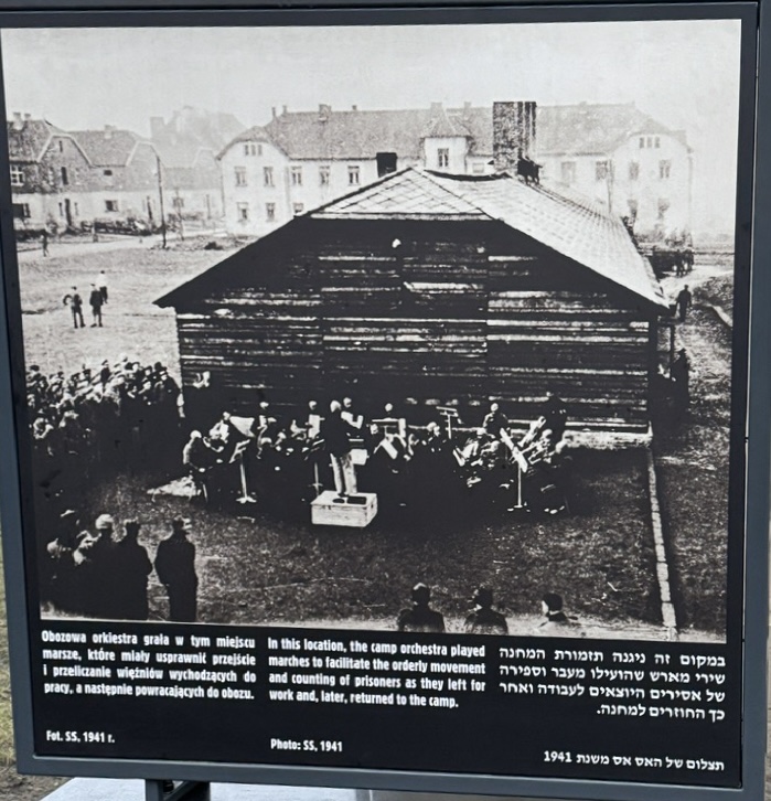 Auschwitz camp Orchestra This is the camp identification papers for one of the prisoners This is a map of Auschwitz. This was originally created as a barracks for Polish troops and was taken by the Germans and repurposed as a concentration and annihilationcampThis is the famous entrance of the camp next to the original Auschwitz camp which was built mainly for extermination. You see the train tracks for the transport directly into the camp You can see the smoke stacks of the houses that used to be there which were destroyed. They were used by the occupation army Each one of these cubicles would hold many people sleeping together