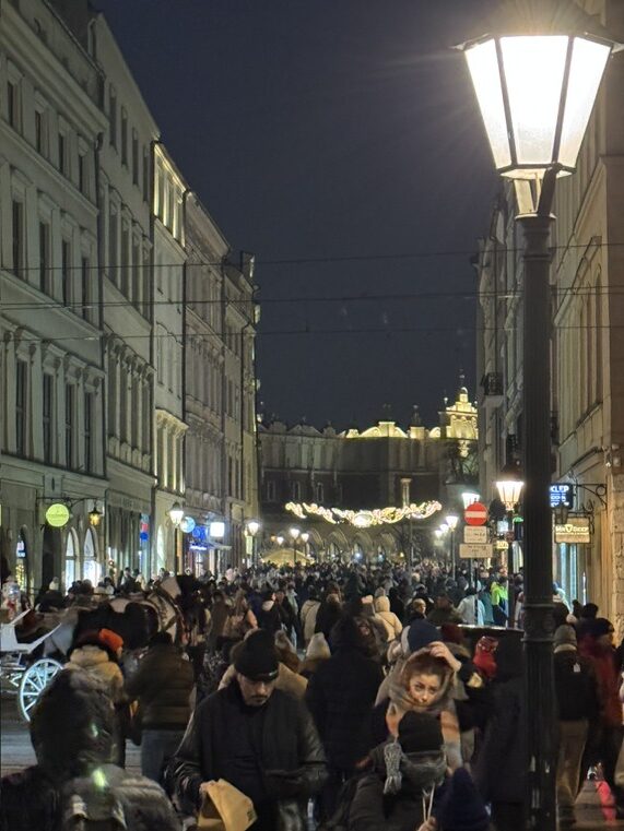 People from all over crowded around during the Christmas season This is some banksy artThe history of the area The large synagogue in Kraków