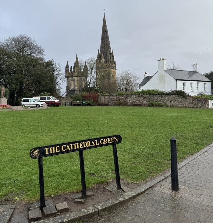 The castle from the street Cardiff Cathedral from a distanceThis burial site was so old it was difficult to even tell it was someone buried under here The family crest of one of the royalty. The Plantagenets loved to use lions Here you can see the crestS of the different owners of the castle