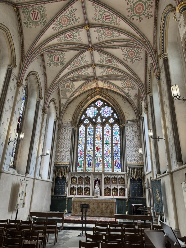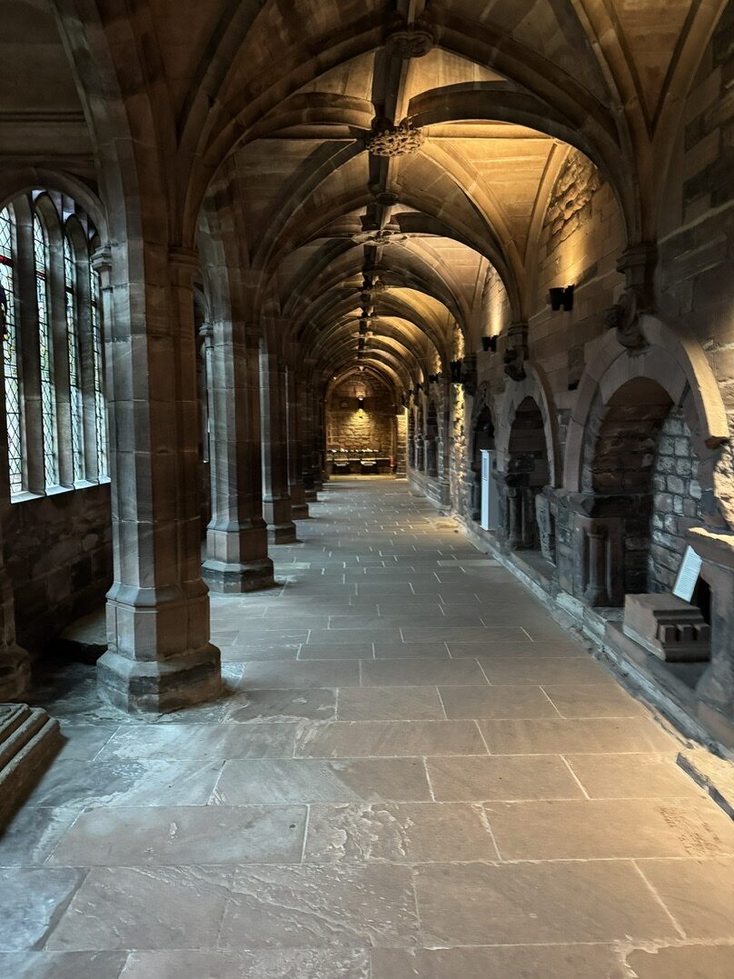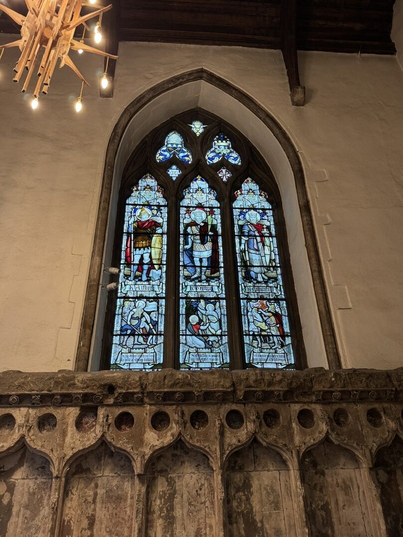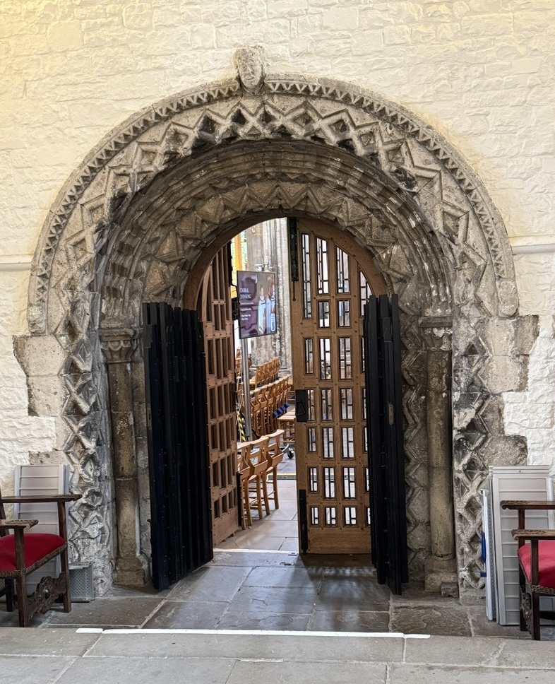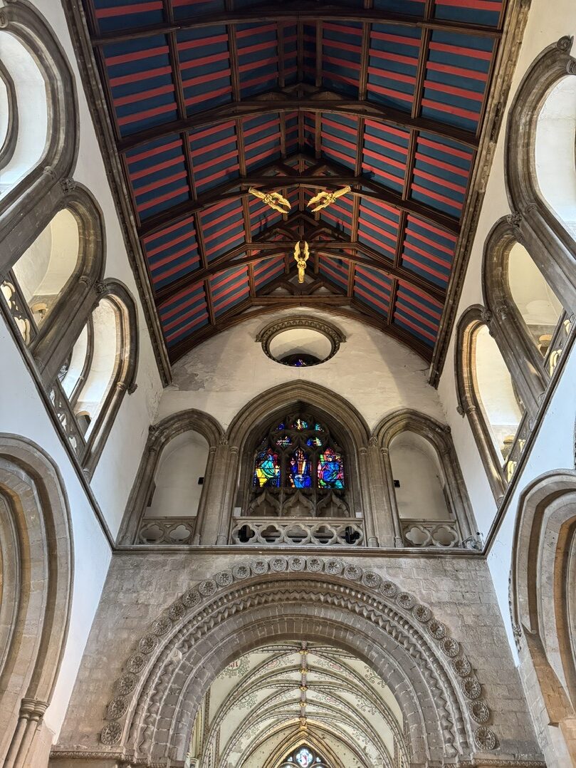 I stopped here to see the cathedral Interesting display in front of the altar Beautiful ceiling inside This is part of the original Norman construction so over 900 years old Some famous fellows and the first one is King ArthurThe arch and the balcony and ceiling were very impressively beautiful The Norman archway