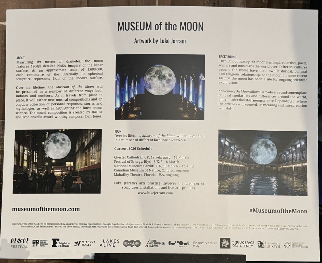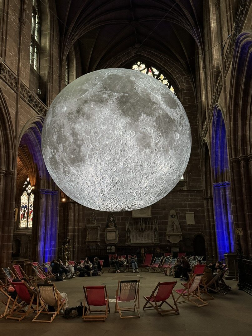 This was a moon exhibit at the cathedral. You could see people in lounge chairs relaxing and looking up at the moon. It’s pretty interesting. If you can expand this and read it you will learn about this moon exhibit.