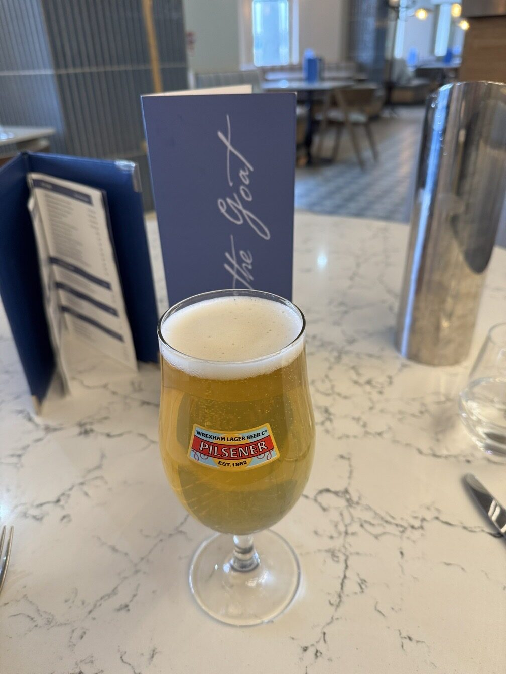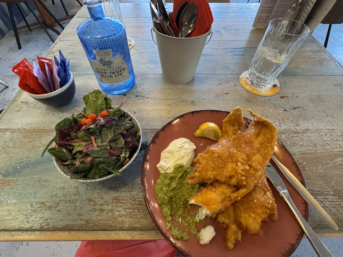 This is the town of the video recording I did which in two days got over 1000 views, something that totally blew me out of the water. It’s a very popular place. Even though it’s not tourist season you see that many of the bed-and-breakfast are fully booked. It’s a nice place to stay for a couple days. Looking over at another hotel from the promenade. It’s obvious this was a resort area for many decades In the distance you can see the many windmills and it’s obvious you need to protect yourself against the wind. It was very strong when I was there He is looking down the promenade along the beach I was recommended this beer and I had this pasta which was extremely well done. And the beer was very tangy and delicious This is their lunch menu The beer was produced not far from here